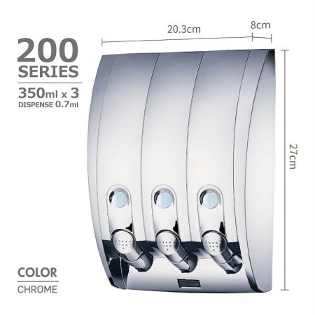 Simple and stylish soap and shampoo dispenser package design provides well protection for the product inside and clear product image outside the box. Each set comes with instruction manual and installation kit including screws, anchors, adhesive tapes and silicone.