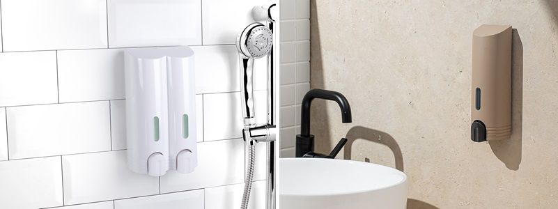 HP-800シリーズは、ホワイト、クローム、新しいベージュのシングルおよびダブルチャンバーモデルを提供します。シャワーにはダブルバージョンを、シンクの横にはシングルベージュを使用してください — オフィス、クリニック、ゲストバスルームにぴったりのシンプルでスタイリッシュなフィットです。