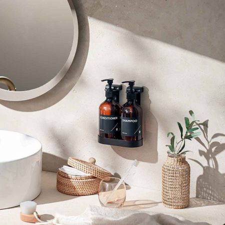 Otel Amenity Temel Şişeleri için Manyetik Kilidi Olan Çift Duvar Rafı - Güvenli Çift Şişe Duvar Organizer'ı | 35 Yıllık Otel & Banyo Duş Sabun Dağıtıcıları Üreticisi | HOMEPLUZ