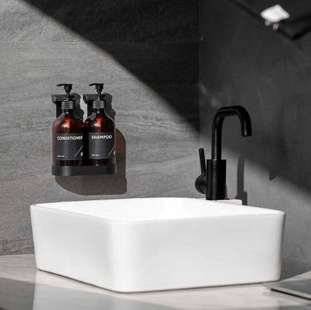 Sessiz lüks tasarımda sabunluk şişe duvar düzenleyici